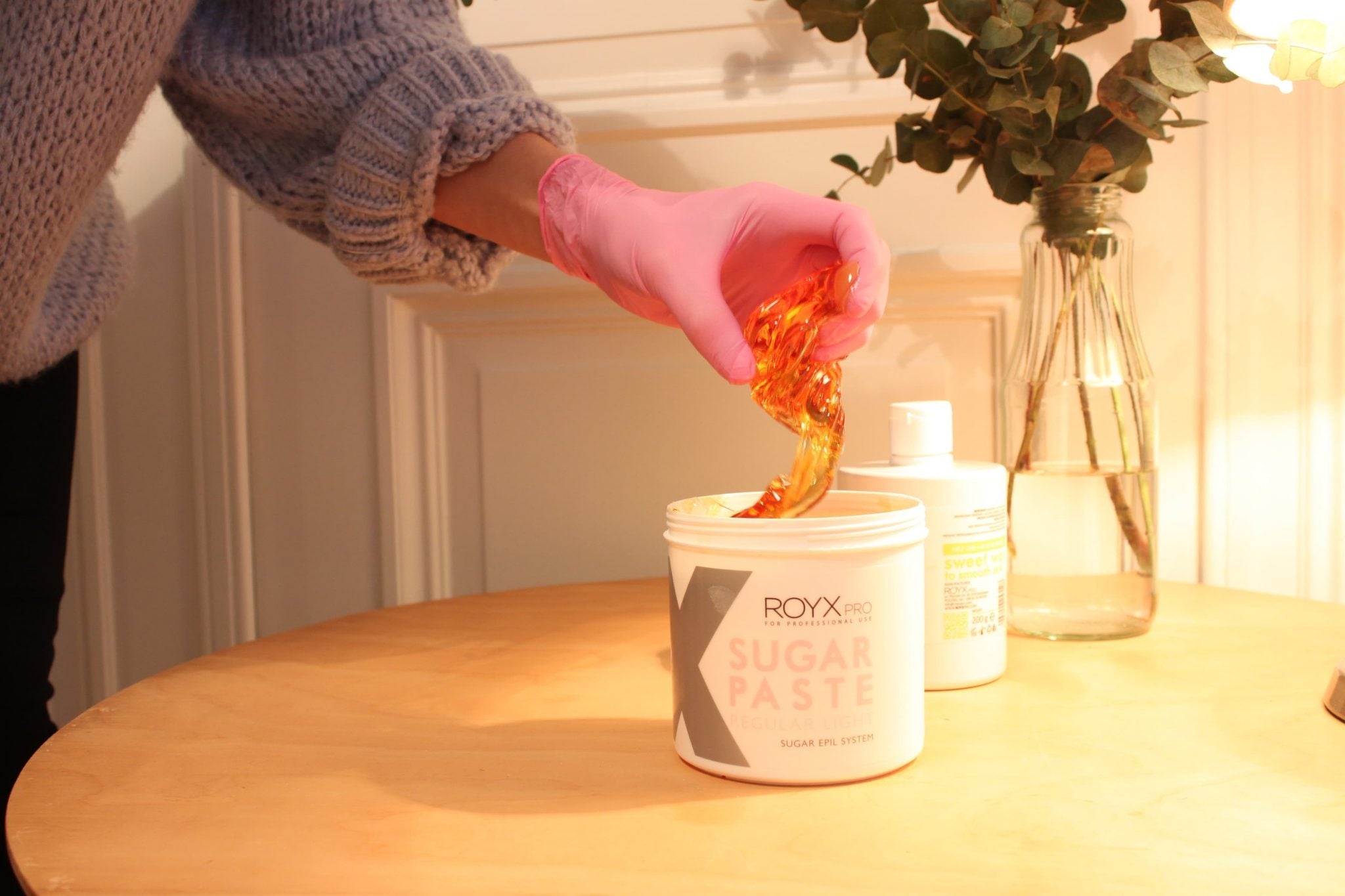 Suikerontharing is een verfijnde ontharingstechniek die alle haartjes vanaf de wortel verwijdert met suikerpasta waardoor ze fijner en dunner terugkomen.